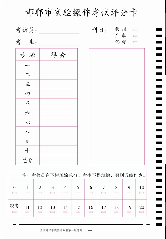 操作考試評(píng)分卡