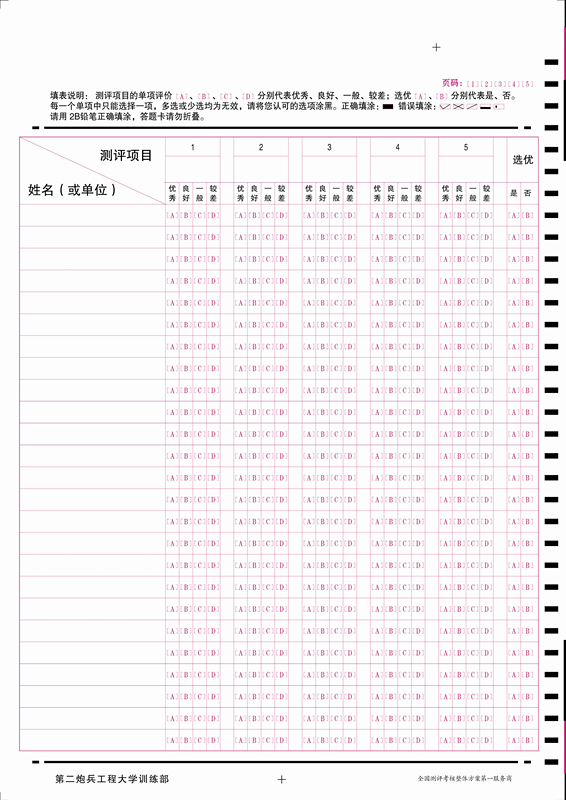 **炮兵工程大學(xué)評(píng)測(cè)表